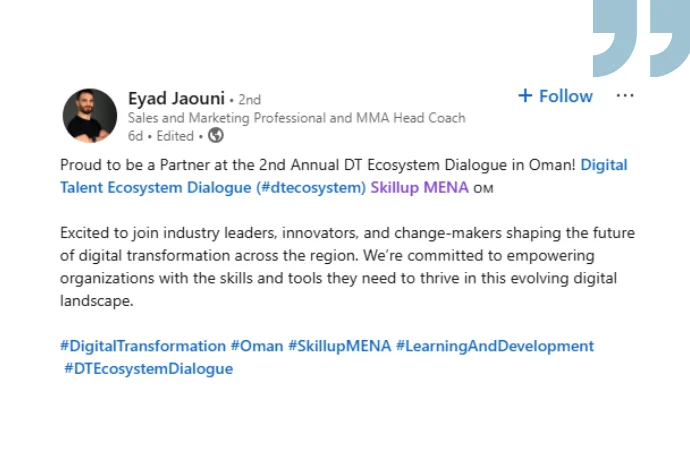 Talal Al Afghani is the CEO and Co-founder of SkillUp MENA, a leading learning and development company transforming professional training across the Middle East and North Africa. Since 2021, he has guided SkillUp’s strategic direction and expansion throughout the region. Under Talal’s leadership, SkillUp MENA has positioned itself at the forefront of educational technology, developing innovative solutions that address the unique learning needs of organizations across the MENA region. His vision focuses on creating accessible, high-quality professional development programs that help businesses build stronger, more capable teams. Talal brings a strong background in venture capital, fundraising, and emerging technologies to his role. His experience gives him a deep understanding of how technology can reshape traditional learning models and create new opportunities for professional growth. Talal’s strategic approach has helped SkillUp MENA build lasting partnerships with companies across the region. His focus on practical results and understanding of what organizations need has made SkillUp MENA a trusted partner for businesses looking to strengthen their teams through effective training programs.